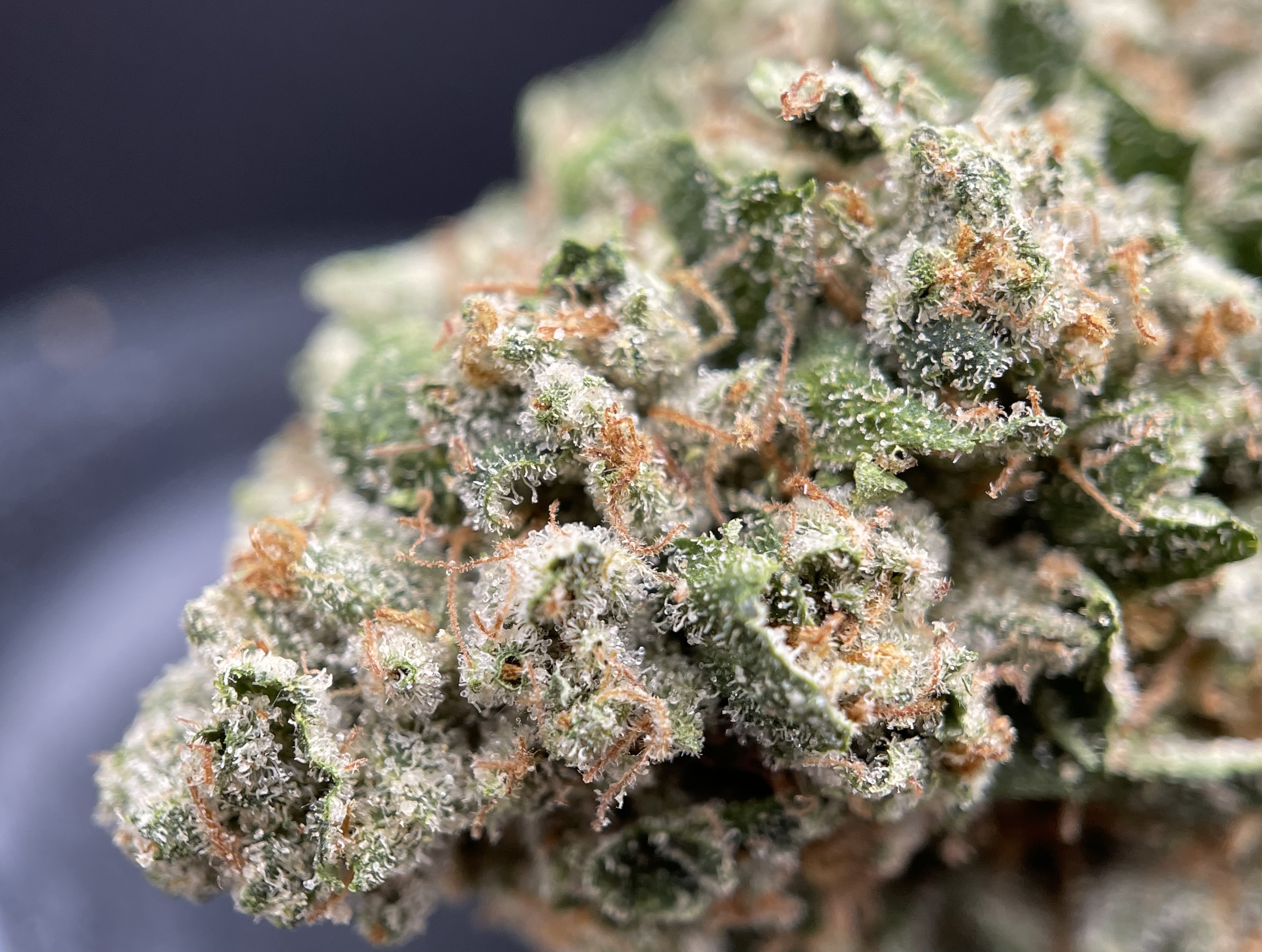 White Runtz is a potent hybrid strain made by crossing Gelato and Zkittlez. White Runtz produces long-lasting effects that are relaxing and tingly. This strain features a sweetflavor profile that coats your senses. White Runtz is noted for having striking white trichomes that make its buds look white like snow. Medical marijuana patients choose White Runtz to help relieve symptoms associated with chronic pain, anxiety and stress.