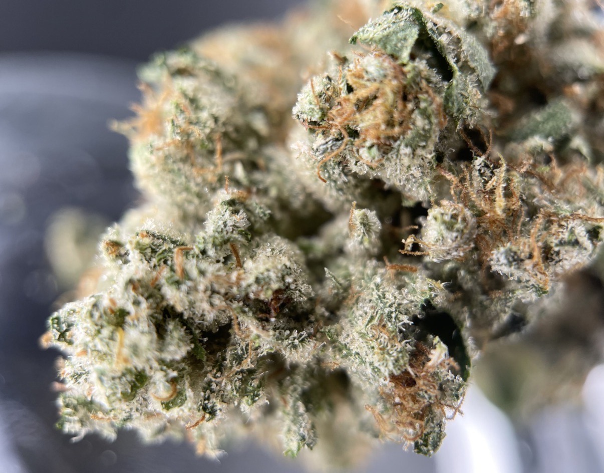 White Truffle is an indica-dominant strain that is a type of Gorilla Butter. This strain produces a quick-hitting head high that will clear your mind of worry. Eventually, these effects can be felt throughout your body, leaving you in a relaxing trance. Consumers who have enjoyed White Truffle weed describe the high as "calming and slightly buzzy." This strain is best when enjoyed after a long day of work or during the evening hours to relax and unwind. White Truffle features a savory and earthyflavor profile accompanied by a mild skunkyaroma. Medical marijuana patients choose White Truffle to relieve symptoms associated with stress and fatigue. White Truffle is dusted by frosty white trichomes and features dark brown hairs.
