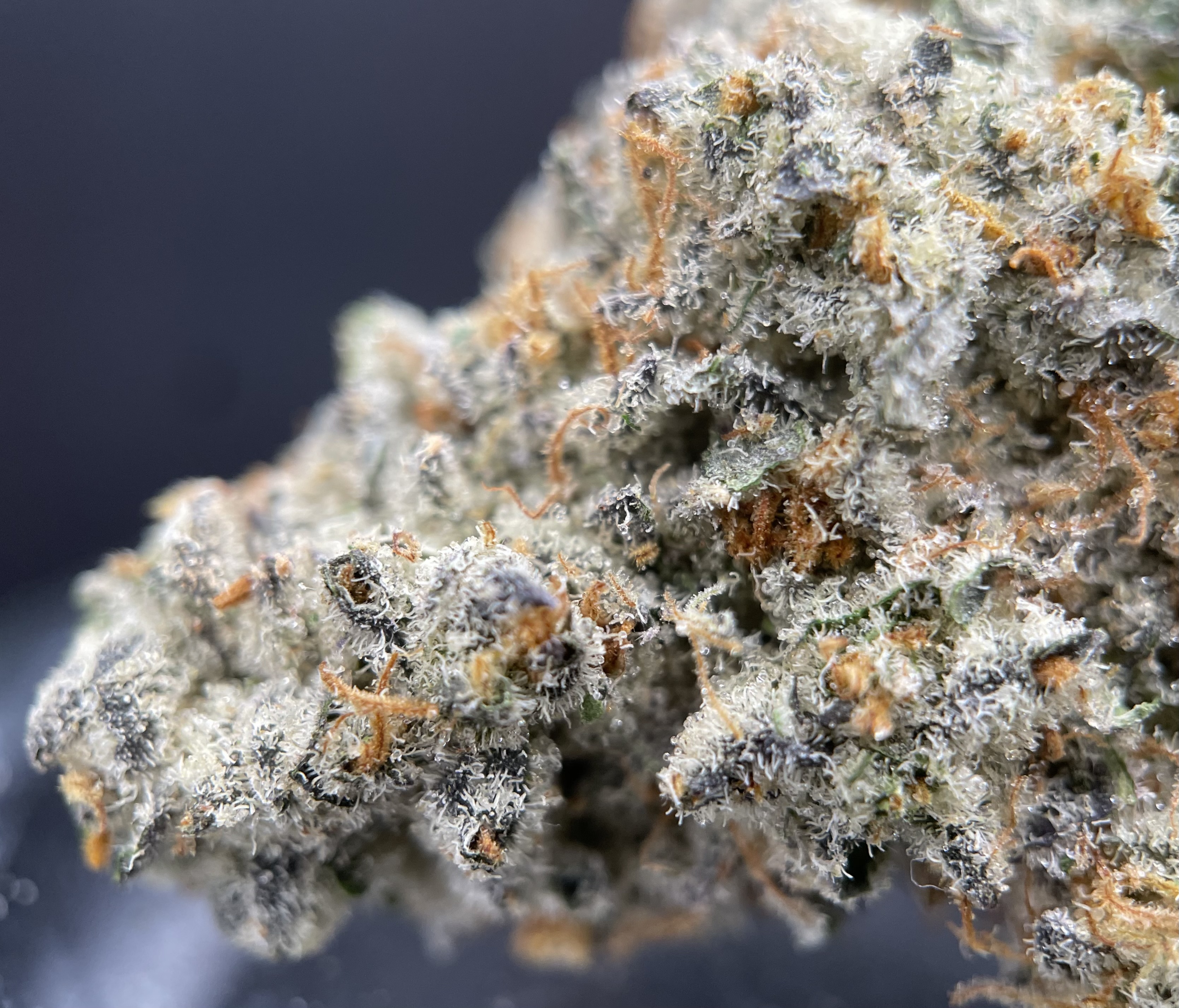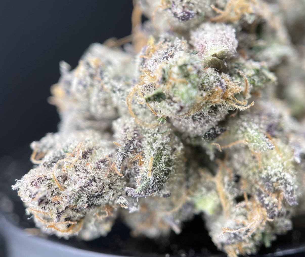 OMFG is a hybrid strain made by crossing Runtz with Red Pop. The effects of this strain are believed to be relaxing. These buds have green accents and are so dark violet, they look black. The dominant terpenes in OMFG are myrcene and caryophyllene; these herbal, tropical terps will have you saying “OMFG.” Medical marijuana patients say they often buy this strain during episodes of insomnia and MS. The original breeder of OMFG is Exotic Genetix.